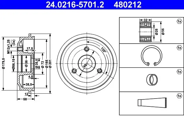 BĘBEN HAMULC. CITROEN AX86-97 Z ŁOŻYSKIEM Bęben hamulcowy ATE 24.0216-5701.2 24.0216-5701/ATE ATE