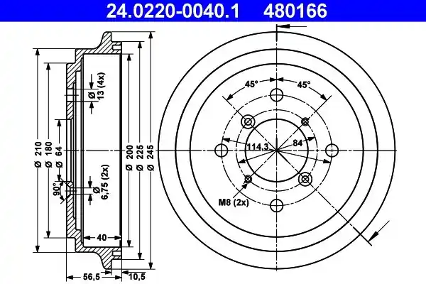(200X40MM) SWIFT II (89-96) SWIFT II (96-) Bęben hamulcowy ATE 24.0220-0040.1 24.0220-0040/ATE ATE