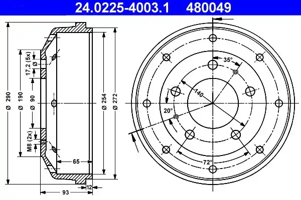 Bestseller Bęben hamulcowy ATE 24.0225-4003.1