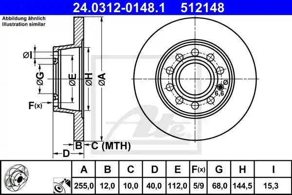Tarcza hamulcowa ATE 24.0312-0148.1 24.0312-0148.1/ATE ATE