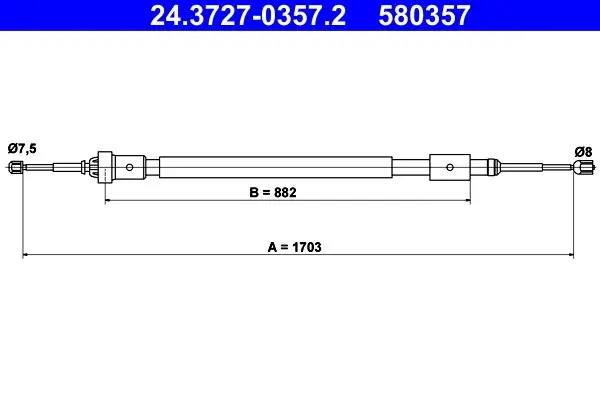 (1703MM) CITROEN DS3 09- TYŁ BĘBNY Cięgło, hamulec postojowy ATE 24.3727-0357.2 24.3727-0357/ATE ATE