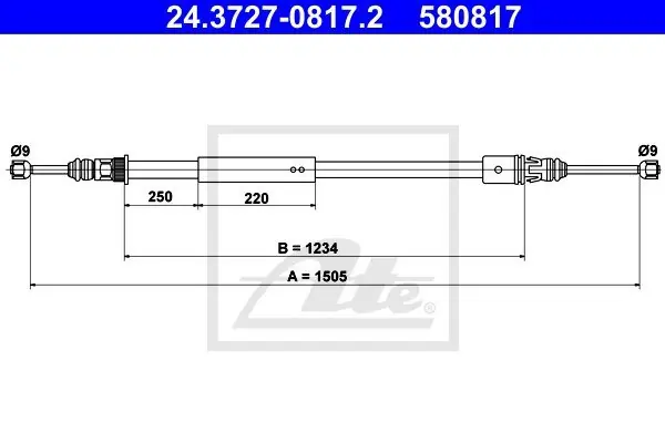 (1505MM) CITROEN SAXO 1,6 VTS 96-04 PEUGEOT 106 1,6I 96-04 TYŁ TARCZE HAMULCOWE Cięgło, hamulec postojowy ATE 24.3727-0817.2 24.3727-0817/ATE ATE