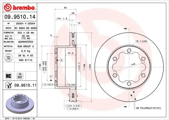 Producent: BREMBO, Indeks: 09.9510.11, EAN: 8020584222133
