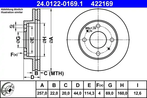 (257X22MM) Tarcza hamulcowa ATE 24.0122-0169.1 24.0122-0169/ATE ATE