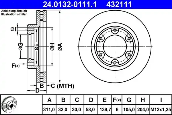(311X32MM) Tarcza hamulcowa ATE 24.0132-0111.1 24.0132-0111/ATE ATE