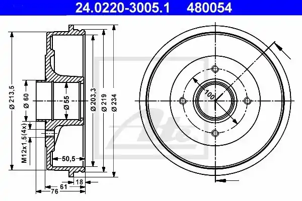 24.0220-0024 RENAULT EXPRESS 85-98 Bęben hamulcowy ATE 24.0220-3005.1 24.0220-3005/ATE ATE