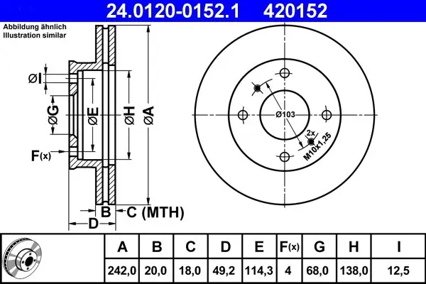 (242X20MM)NISSAN PRIMERA 1.6,2.0D 90-96 Tarcza hamulcowa ATE 24.0120-0152.1 24.0120-0152/ATE ATE